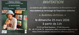 – l‘EXPOSITION AUTISTES-ARTISTES de la galerie Les Effets Secondaires dont Le Vernissage aura lieu de 10 heures à 18 heures